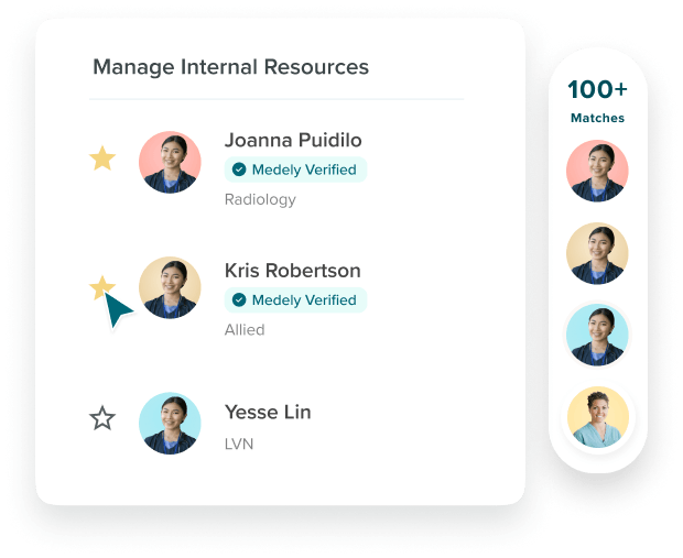 Give your internal employees the first opportunity to fill open shifts. With self-scheduling, your float team can select shifts that work for them, while unfilled shifts waterfall to the talent marketplace, ensuring you’re always fully staffed.