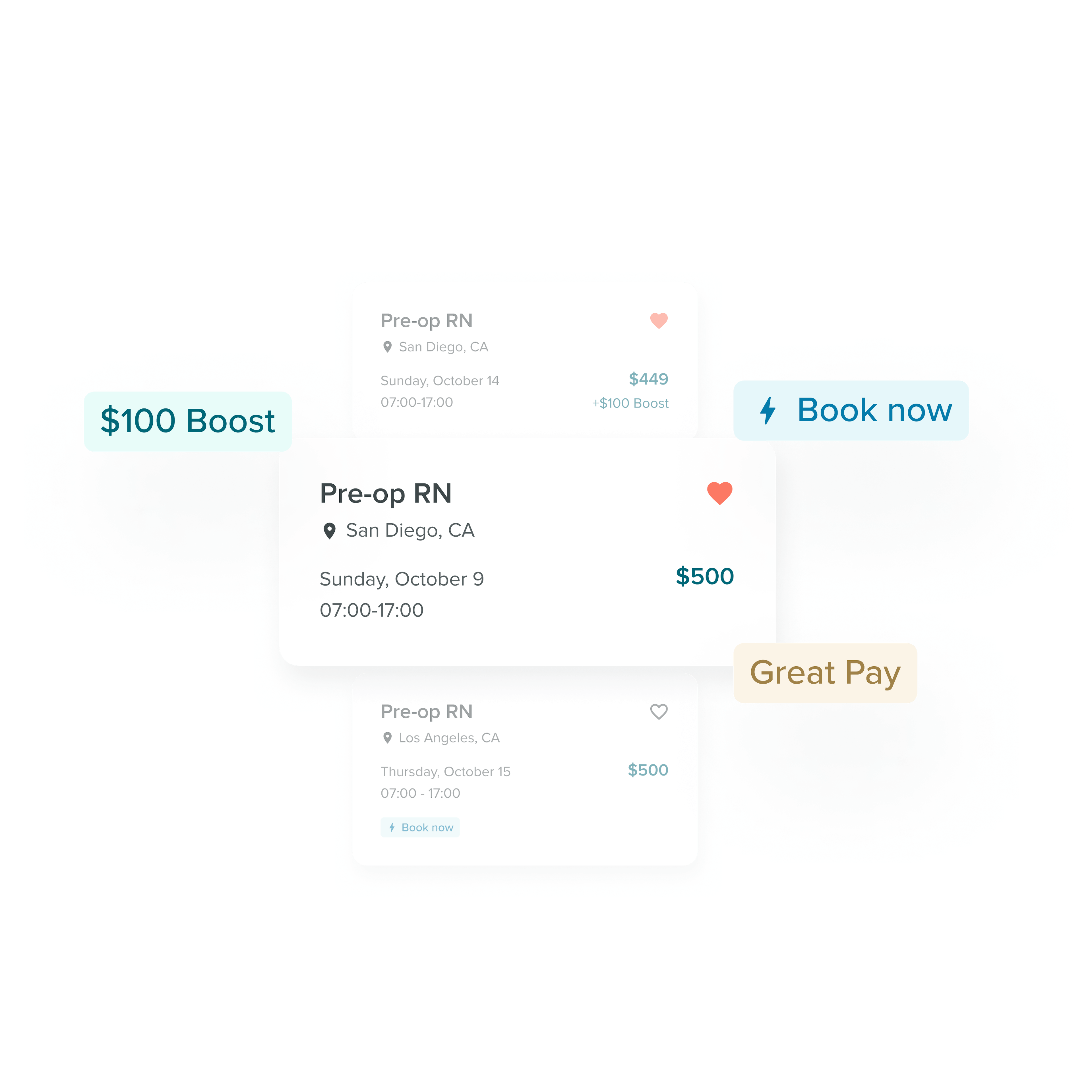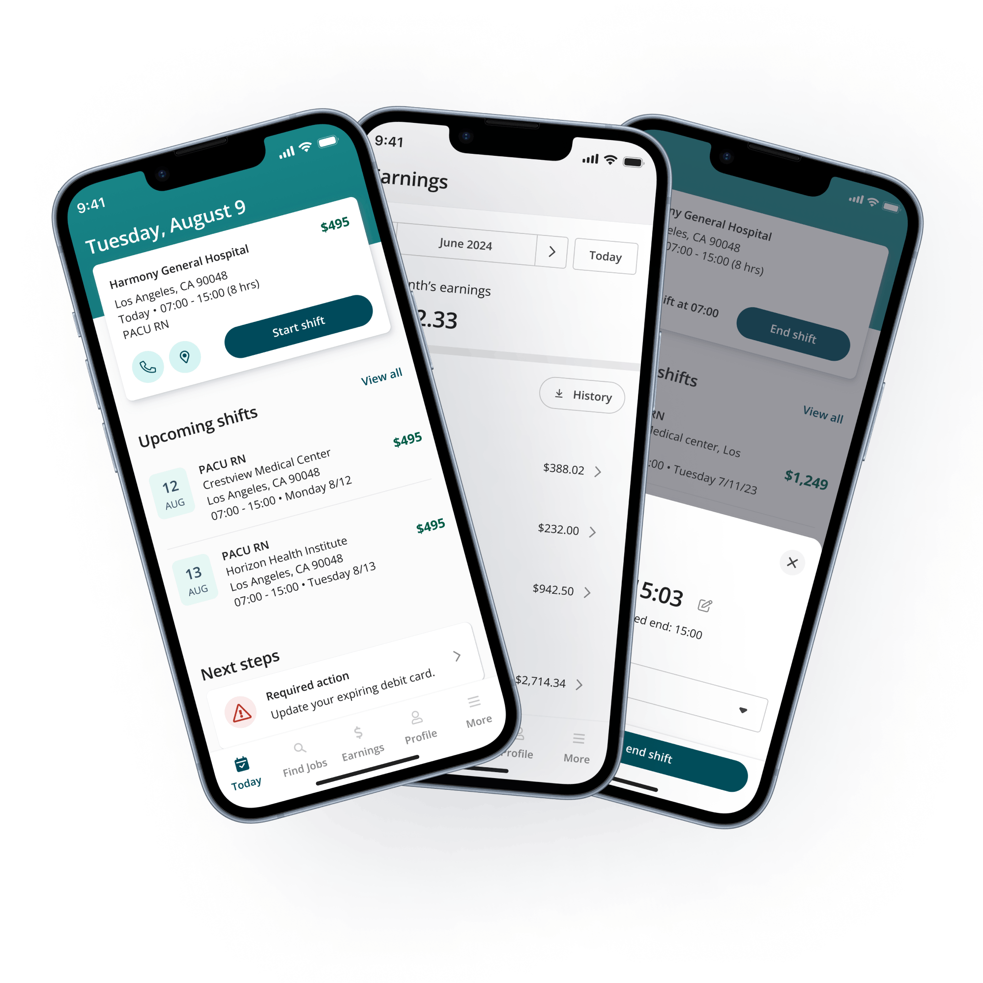 Use our app to track your earnings and manage payouts. Multiple pay dates per week for per diem shifts mean shorter wait times for payment.